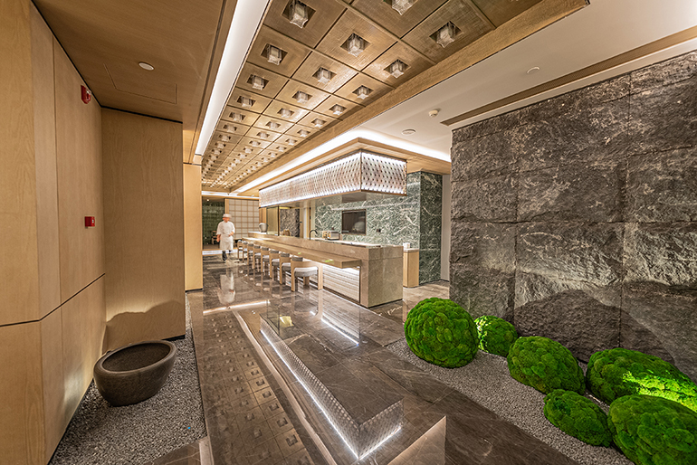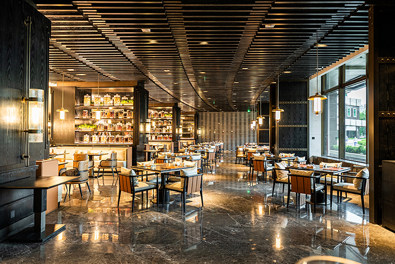 这是一座无法批量施工的项目:气势恢宏的无柱宴会厅、素洁静雅的辰山中餐厅、中西合璧的新福席特色餐厅……每个空间都有其独特的美学蕴含,仅在港源施工范围内的空间就涉及