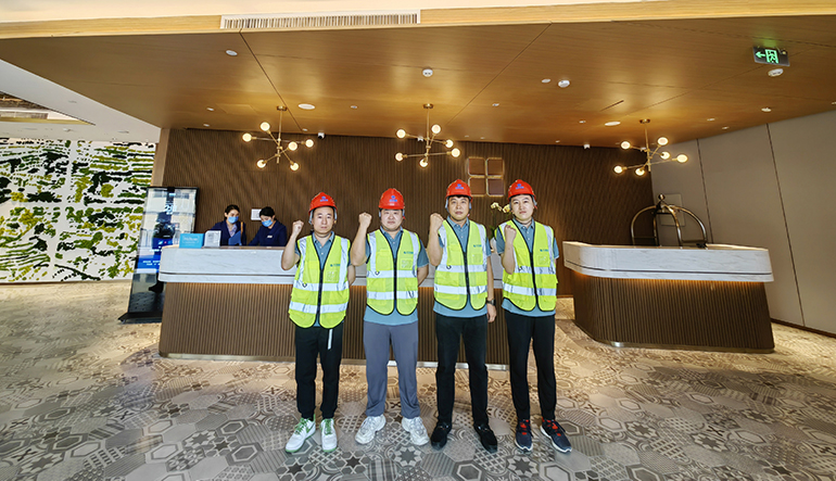港源装饰项目管理团队由一批施工经验丰富的管理人员组成。在项目开工初期,团队便根据工程实际情况,针对项目的重难点及关键节点进行了梳理及分析,对重点区域及技术难点做出了专项施工方案,对本工程的所有节点收口进行全员梳理及专业深化,对关键节点提前理清工作面技术方案,科学组织人力物力,对可能发生的例外情况进行提前预判及防范,并且依次编制了