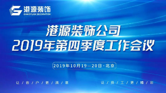 2019年10月19-20日,港源装饰第四季度工作会议在北京总部召开。江河集团总裁许兴利率集团行政人事总监刘宇、商务总监杨涛等领导出席会议。
