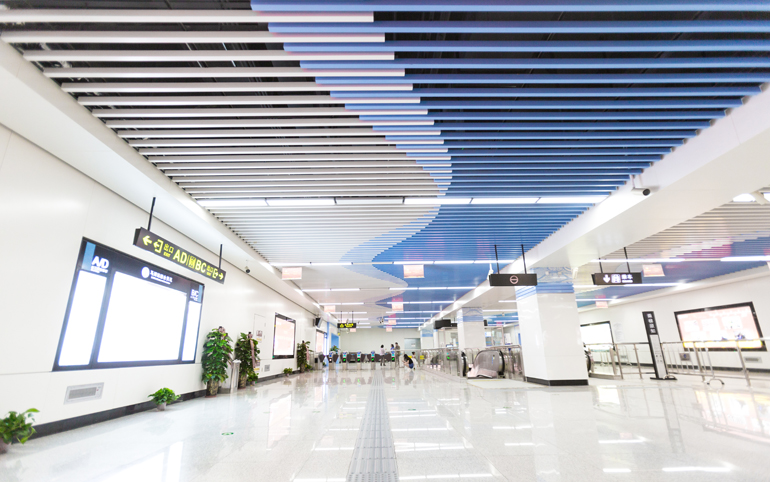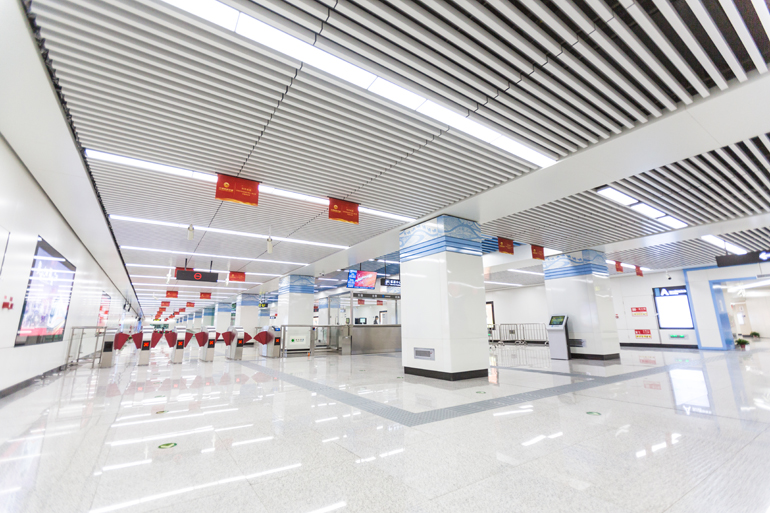 在施工过程中,港源装饰综合考虑站点内的实用功能及艺术效果,将装饰材料、施工工艺与总体设计原则有机结合,在既定时间内为兰州市民呈现出了一个清新雅致、底蕴深厚的兰州轨道交通1号线。