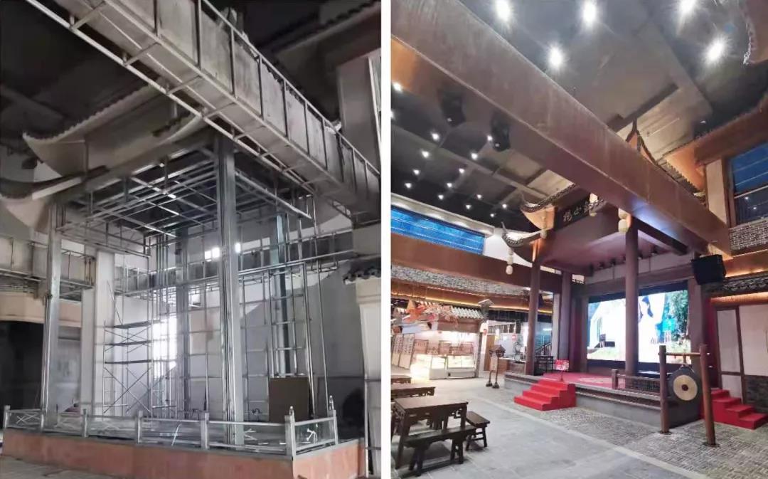 襄阳华侨城奇幻度假区奇妙镇位于襄阳市东津新区,总投资16亿元,占地14.3万平方米,是结合南船北马的汉水特色,融合市井文化、场景体验等多元属性为一体的文旅融合型商业综合体。港源装饰负责奇妙镇『锦绣襄阳』主题馆、『铜鞮巷』美食街等仿古风格区域以及43个现代风格电梯厅的主题包装和精装修施工。