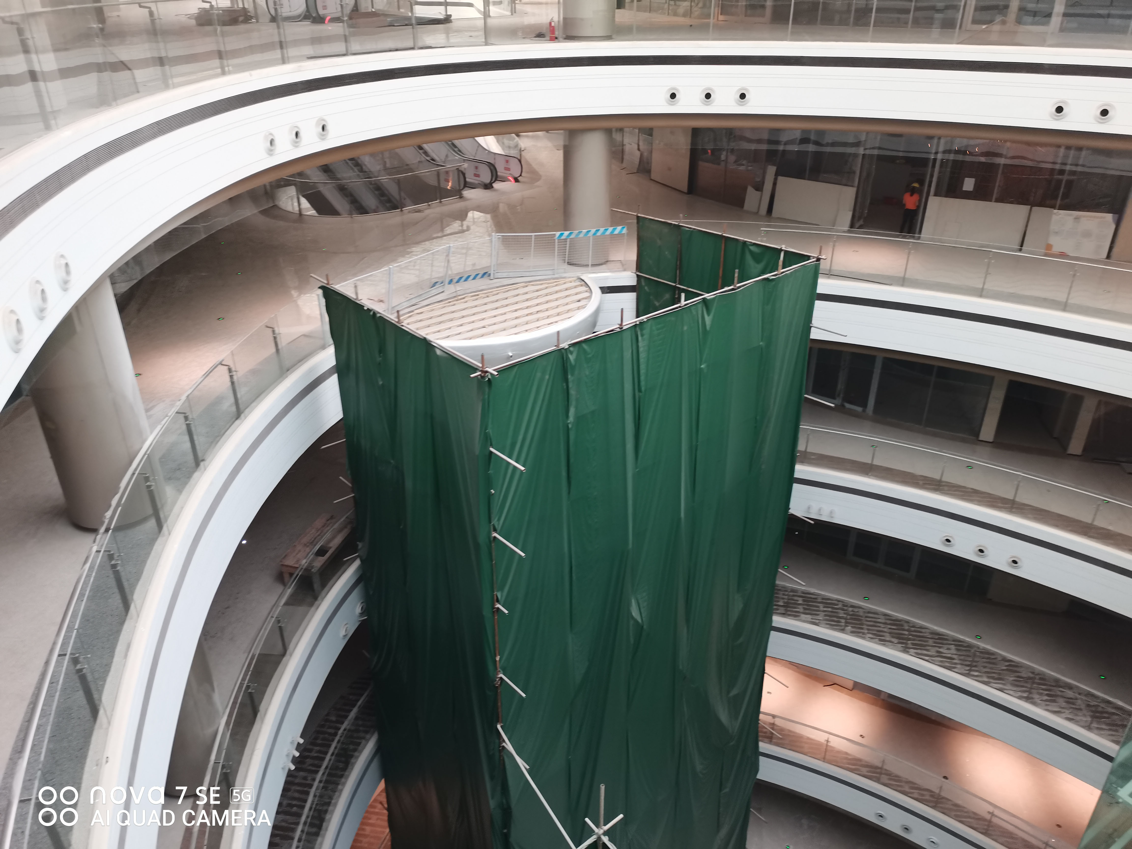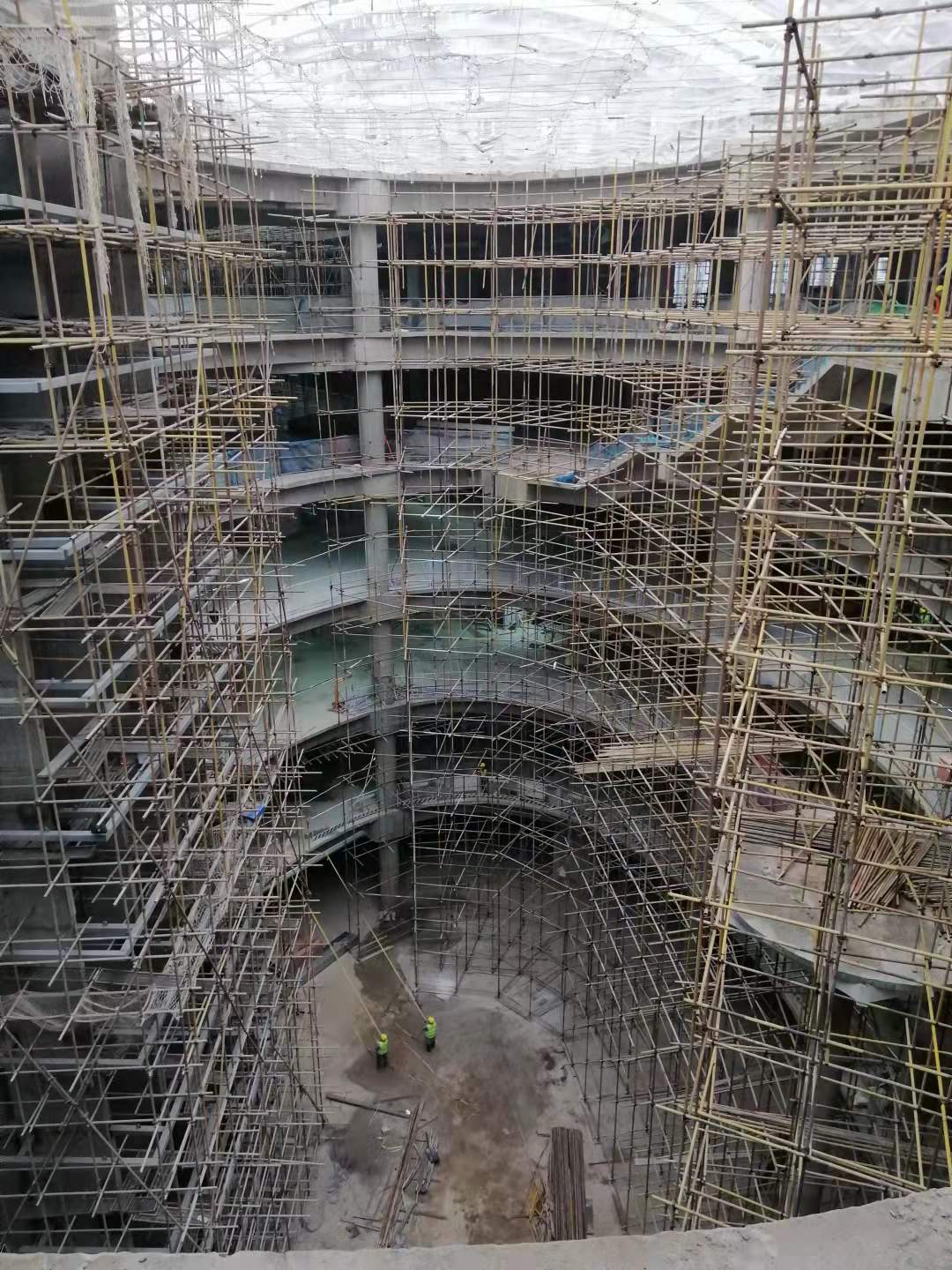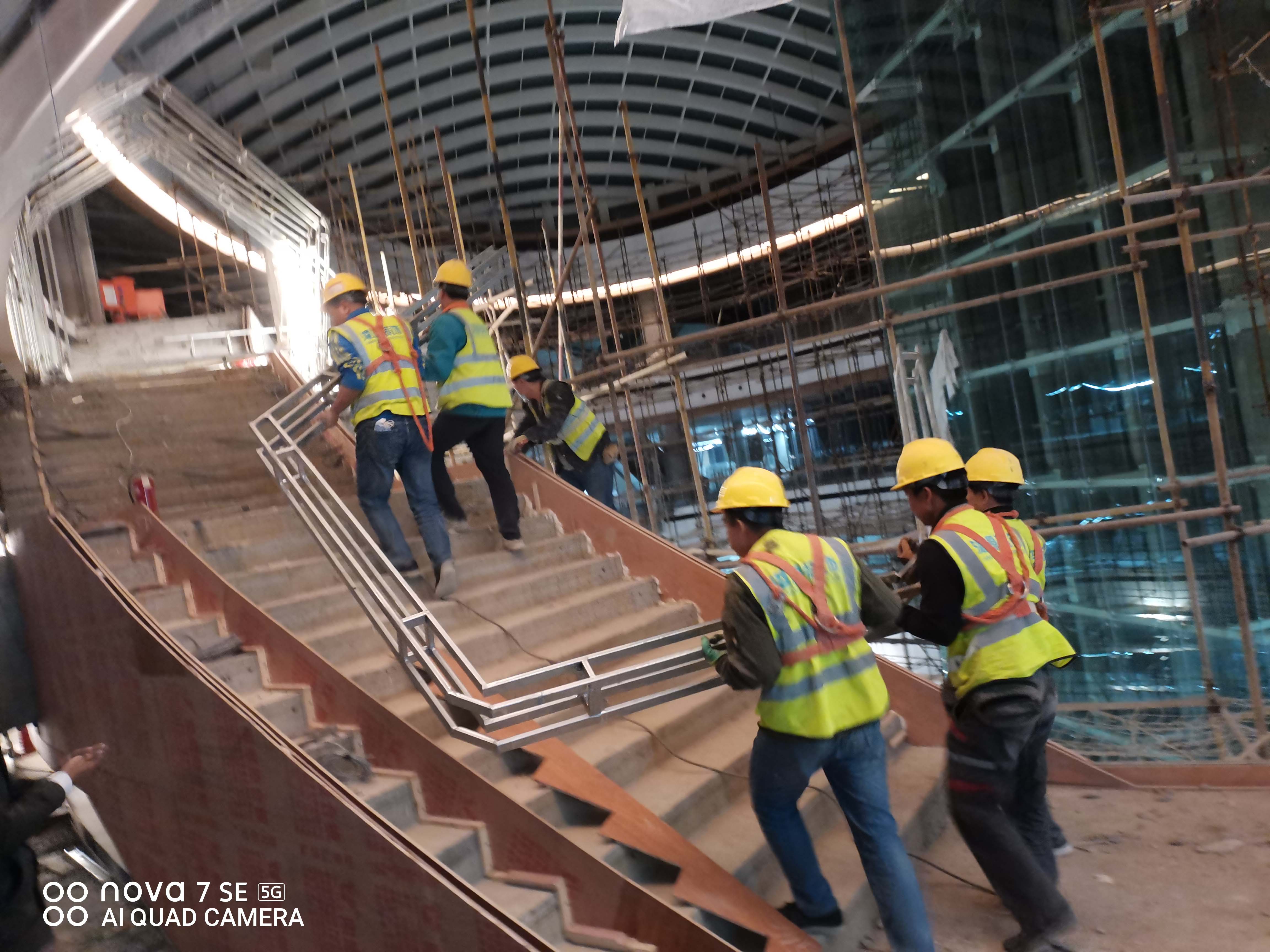 欢乐汇100FUN CITY购物中心主中庭高度33米,港源装饰负责全部楼层椭圆形侧壁、悬空飞天梯、两座悬挑观景台等区域的临边施工,项目团队在全过程中均需克服高空、高危作业的挑战。