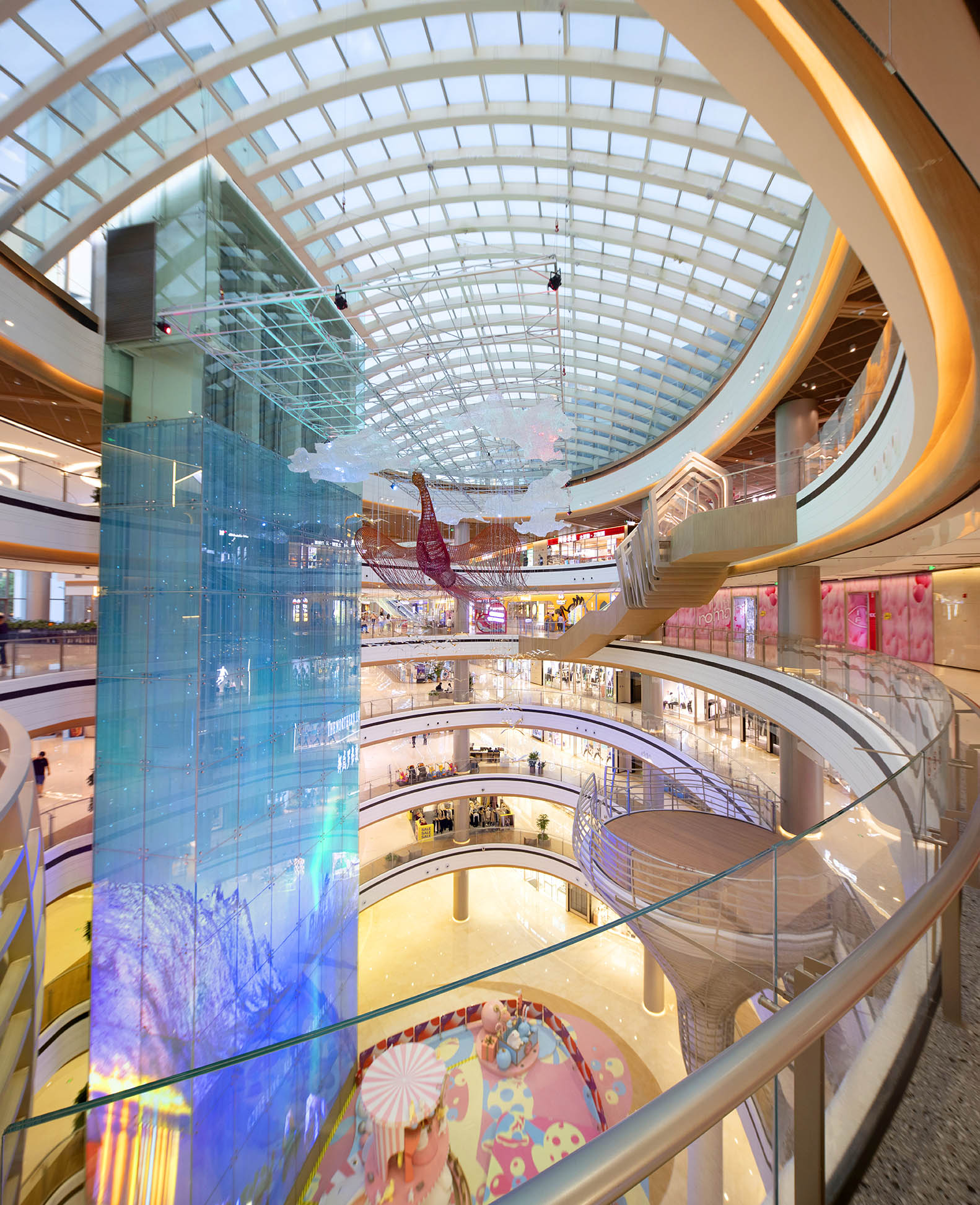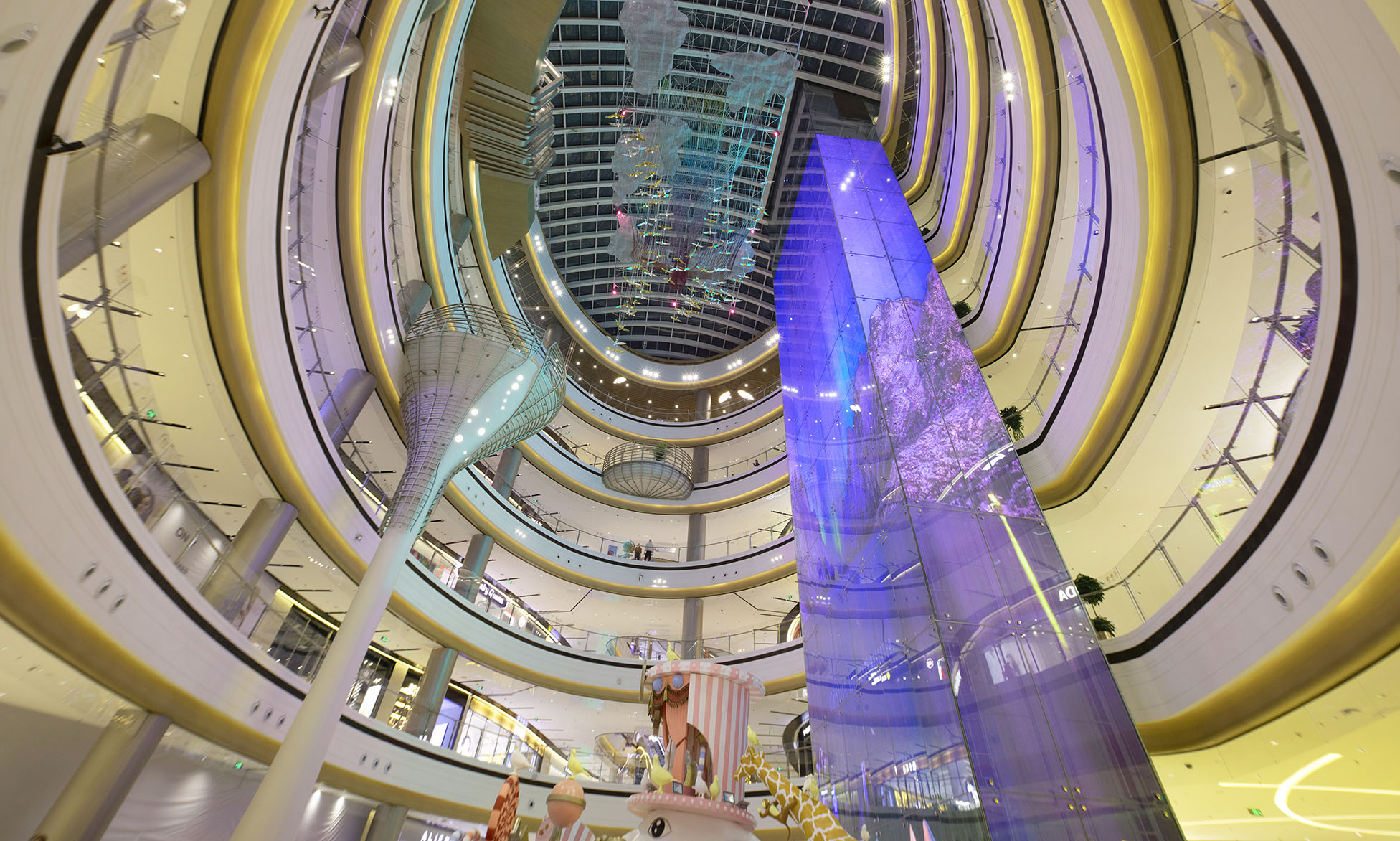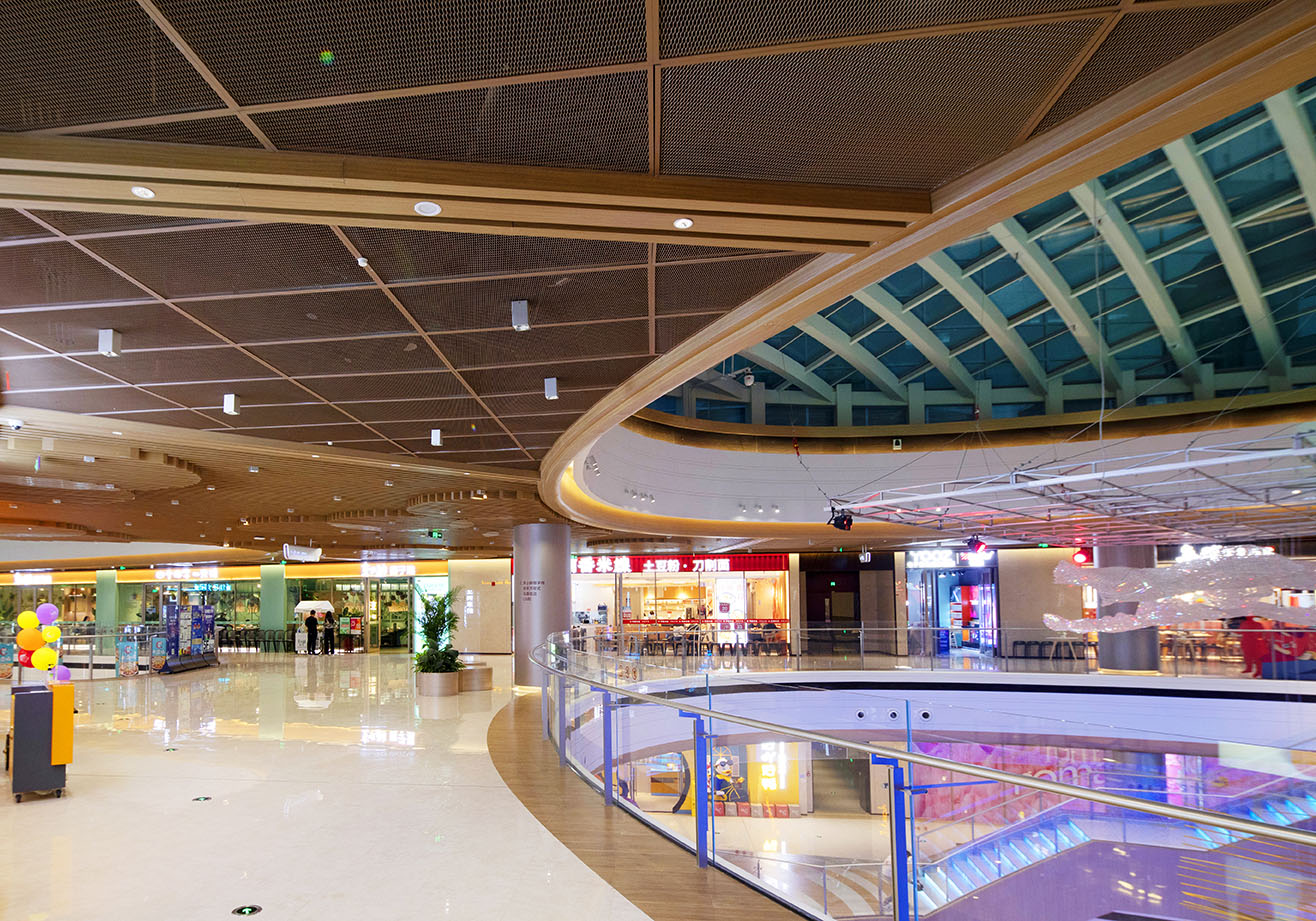 港源装饰在欢乐汇项目中负责主、次中庭等重要空间的高难度精装修施工。