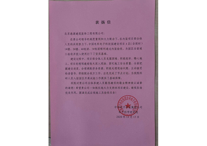 中电科表扬信(一)