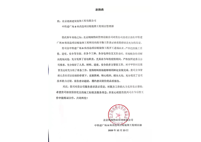 中铁建表扬信