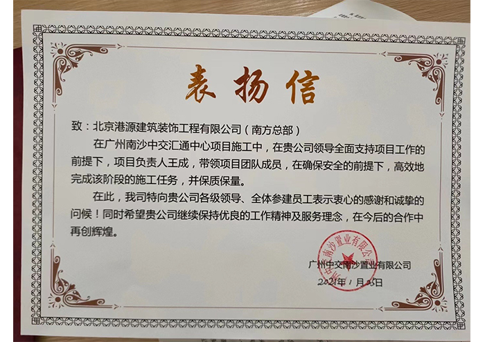 运营一分首特绿能港表扬信