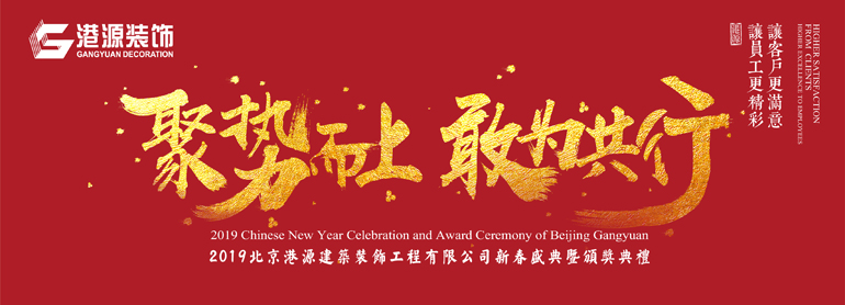 2019年1月30日,正值万象更新之际,港源装饰成立26年来规模最大的一次全员聚会——聚势而上,敢为共行2019港源装饰新春盛典暨颁奖典